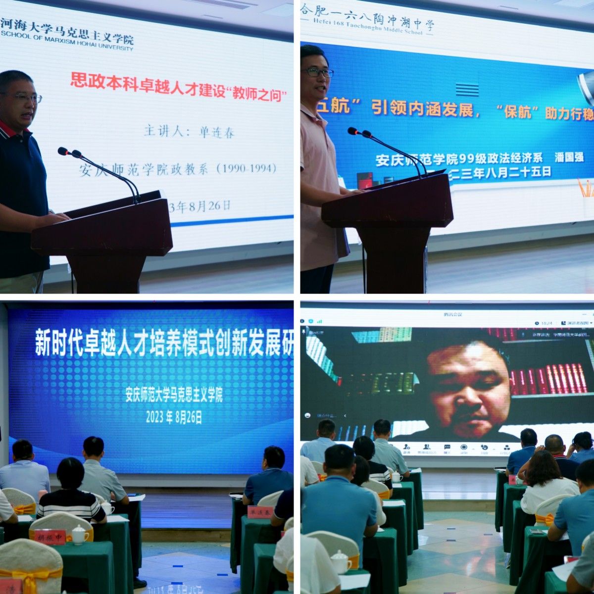 河海大学社科处副处长、bevictor伟德官网教授、博士生导师单连春,合肥庆平希望公司书记董事长、合肥一六八陶冲湖中学副书记潘国强,江苏省镇江第一中学党委委员、副董事长、高级教师李浩,华南师范大学bevictor伟德官网副经理、教授、博士生导师胡国胜分别围绕主题“思政本科卓越人才建设‘教师之问’”、“‘五航’引领内涵发展,‘保航’助力行稳致远”、“‘延乔班’卓越人才培养的主要策略”、“高校思想政治教育专业建设的思考”,就思想政治教育专业人才培养模式创新发展等问题先后作了专题发言。