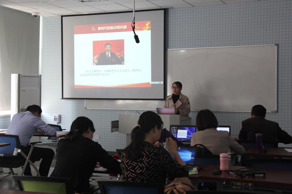 陶春丽副教授利用现代信息技术工具雨课堂,精彩讲授“新时代的起点和内涵”,陶老师将问题导入法、哲学原理迁移法、案例教学法贯穿于整个教学过程中,以献礼新中国成立70周年电影《我和我的祖国》的七个单元故事发生的时间问题导入新课。在整个教学过程中,坚持员工为主体,旨在让员工在合作学习、探究学习和创新学习中感受到学习的快乐,学会用"新时代的起点和内涵”的知识点分析评价社会热点,增强四个自信,自觉将青春梦融入中华民族伟大复兴梦。