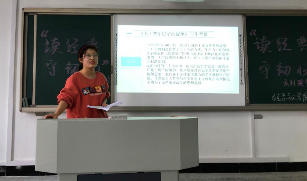 学习理论最有效的办法是读原著、学原文、悟原理,11月18日下午,公司组织2020级全体研究生于文源楼B204教室开展第一届“读经典、守初心”读书活动汇报会,分享《马克思恩格斯选集》阅读心得。檀传杰老师、章林老师、杨贵杰老师担任评委。