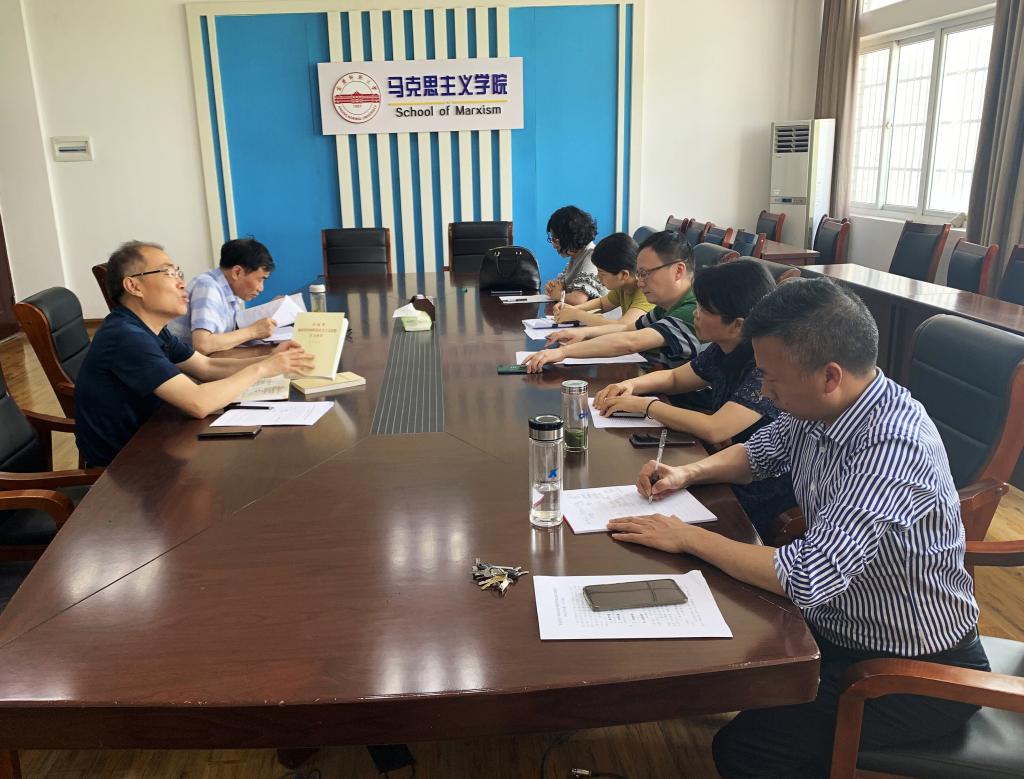 与会同志结合思政课教学在会前自学了《习近平新时代中国特色社会主义思想学习问答》第二章“人间正道开新篇”和第三章“初心砥柱天地间”。学习会上,金文斌领学了习近平《论中国共产党历史》重要篇章——《在庆祝中国共产党成立九十五周年大会上的讲话》《在纪念红军长征胜利八十周年大会上的讲话》《在纪念毛泽东同志诞辰一百二十周年座谈会上的讲话》《在纪念邓小平同志诞辰一百一十周年座谈会上的讲话》。