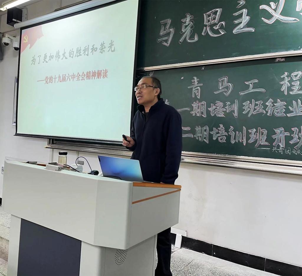 在庄严的国歌中,会议拉开序幕。金文斌为第一期青马班的15名优秀学员颁发荣誉证书,并为青马班学员作了《党的十九届六中全会精神解读》的报告。