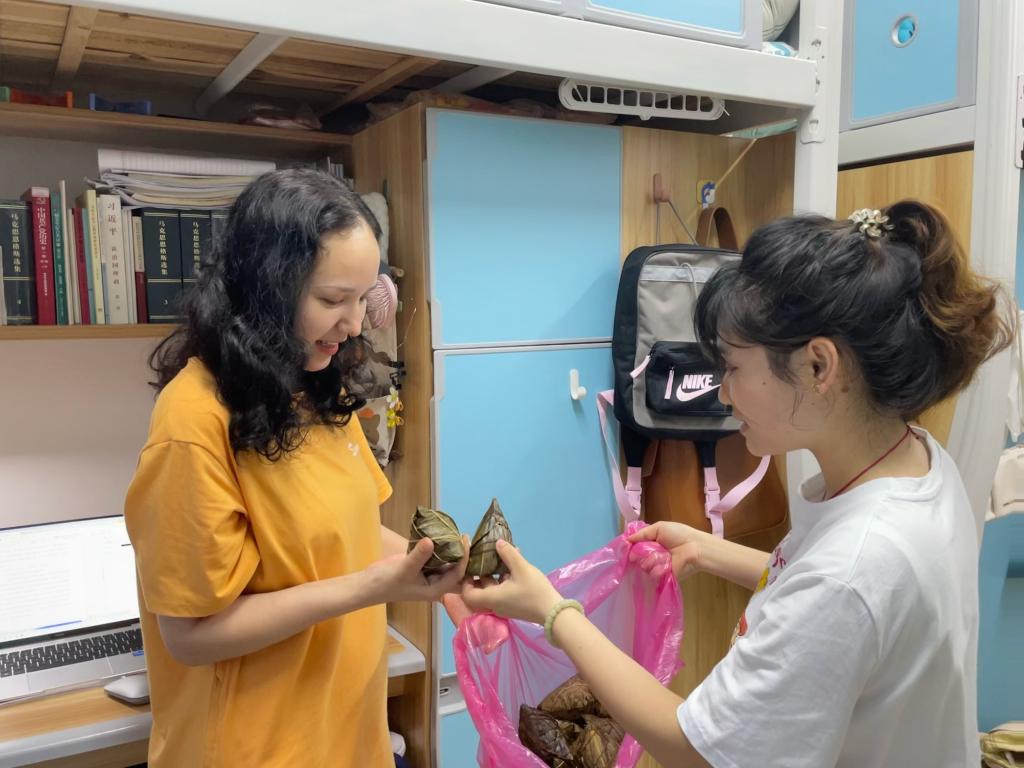 2021级学科思政专业边甜甜说“这样的节日,大家其实都很想家,公司给省外研究生发放粽子,我很感动。公司就像家一样,在公司体会到了家的温馨。”