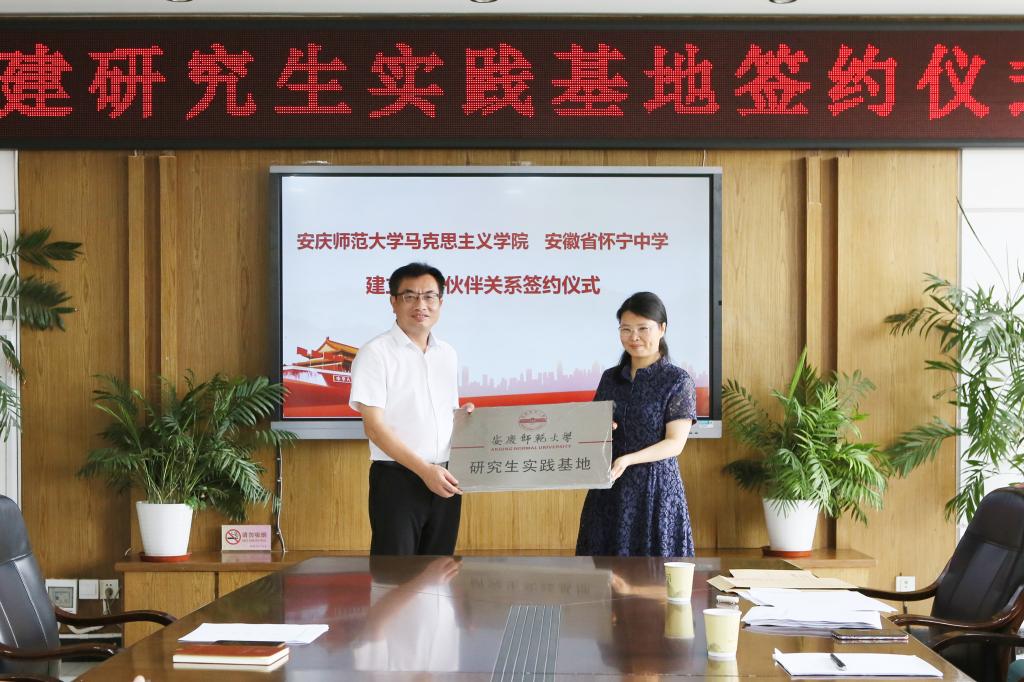 严仍昱代表bevictor伟德官网为怀宁中学和高河中学授牌,并向怀宁中学丁满华老师颁发校外研究生导师聘书。(撰稿:张雅 摄影:汪光宇 张雅 审核:严仍昱 张俊生)