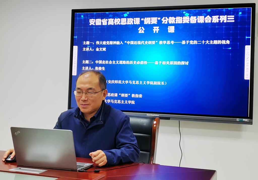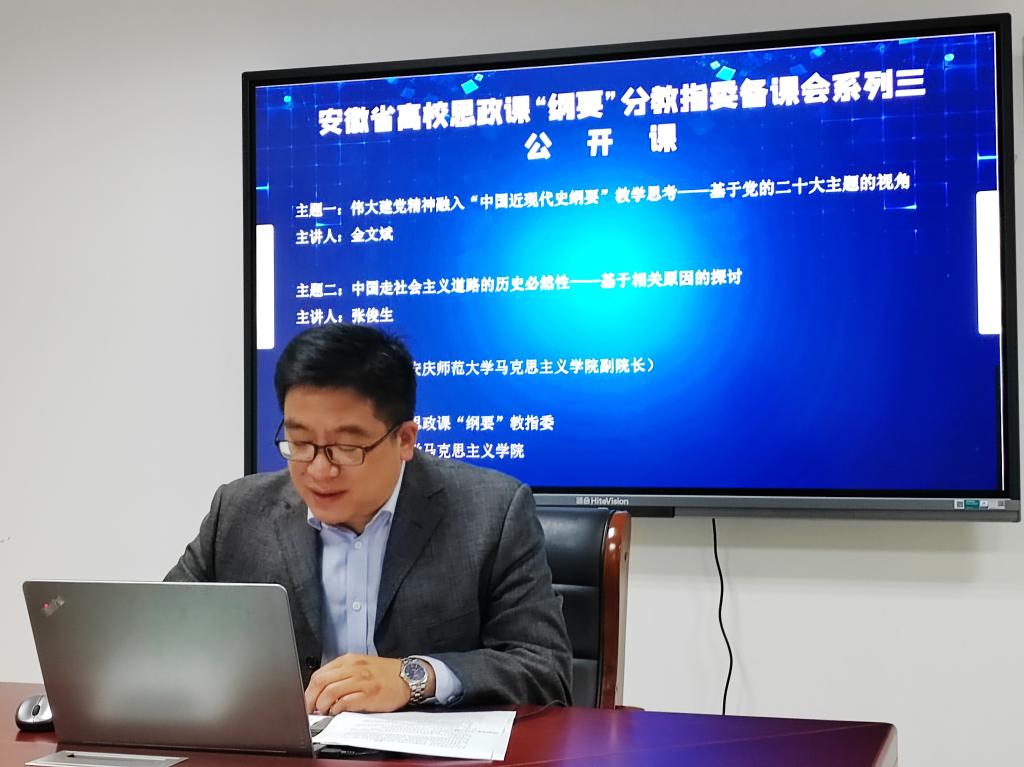 11月16日,由安徽省高校思政课“中国近现代史纲要”分教学指导委员会主办、bevictor伟德官网承办的集体备课会在腾讯会议线上举行。安徽省教学名师、伟德中国官网教授金文斌,公司副经理张俊生应邀作了辅导报告,公司专兼职教师、省内各高校师生200余人参加了会议。公司副经理余江舟主持集体备课会。