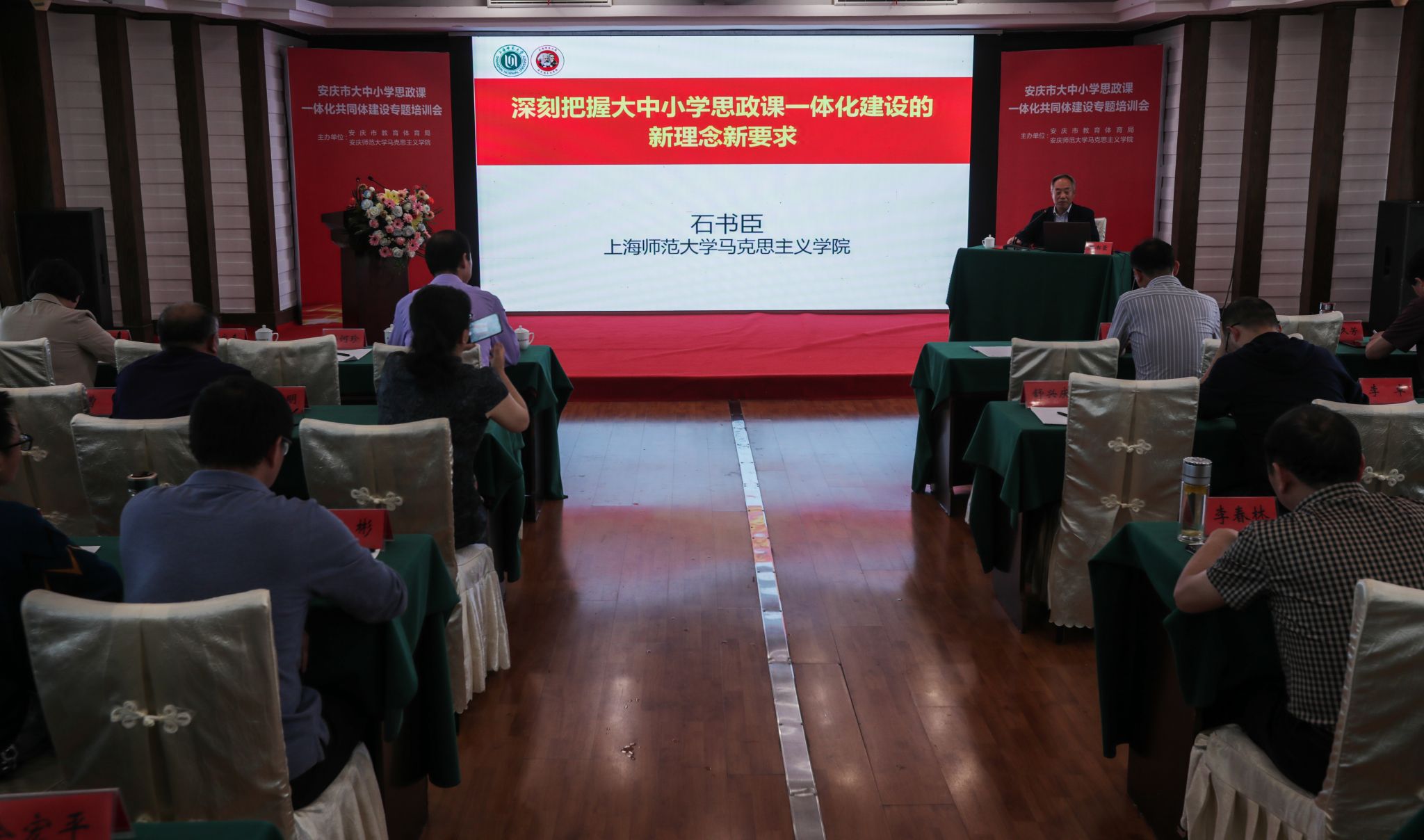 在专题培训会上,来自上海师范大学bevictor伟德官网博士生导师石书臣教授受邀作了题为“深刻把握大中小学思政课一体化建设的新理念新要求”主旨报告。在研讨交流阶段,安庆市大中小学思政教师进行了同题说课。