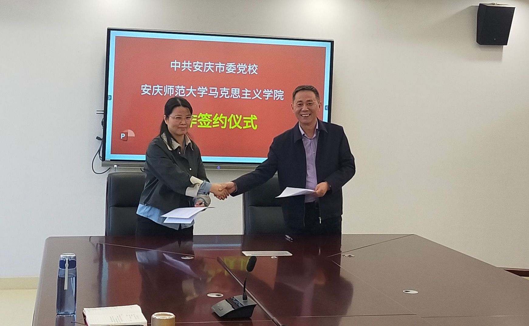 公司经理严仍昱、安庆市委党校副董事长程鹏代表单位签订合作协议。在签约仪式上,双方围绕合作内容,结合各自优势,就制定合作项目的具体实施方案进行了深入交流。双方均表示,将切实推动双方合作取得更多成果,实现共同发展。(撰稿、摄影:陈道发 编辑:盛佳 审核:严仍昱)