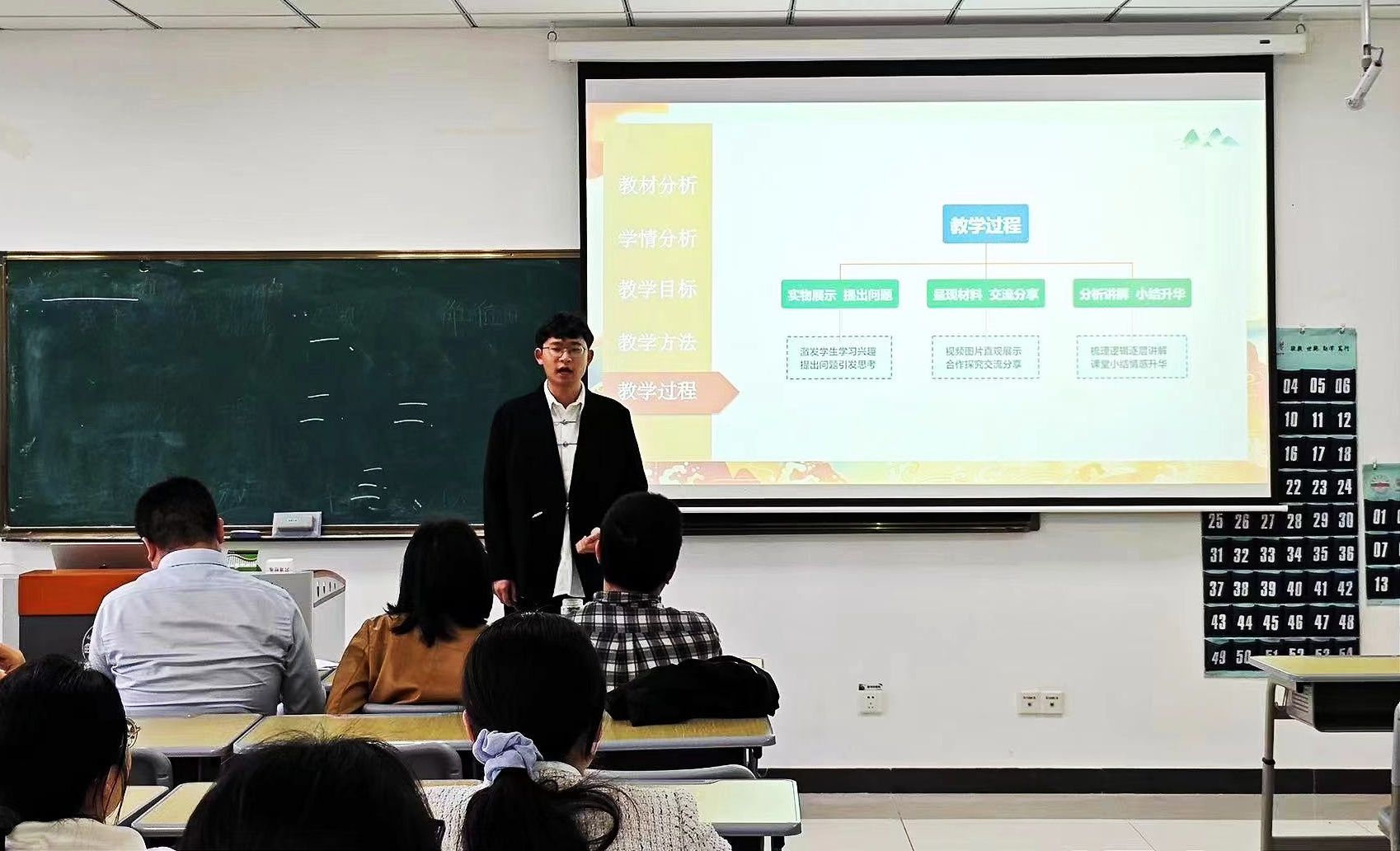 比赛中,评委老师从材料准备、教学目的、教学思路、教学过程设计、语言表达以及教学方法运用等方面进行了评判。参赛选手精心策划教学内容,注重课程结构和教学方法的创新,生动活泼地展示了教学风采。