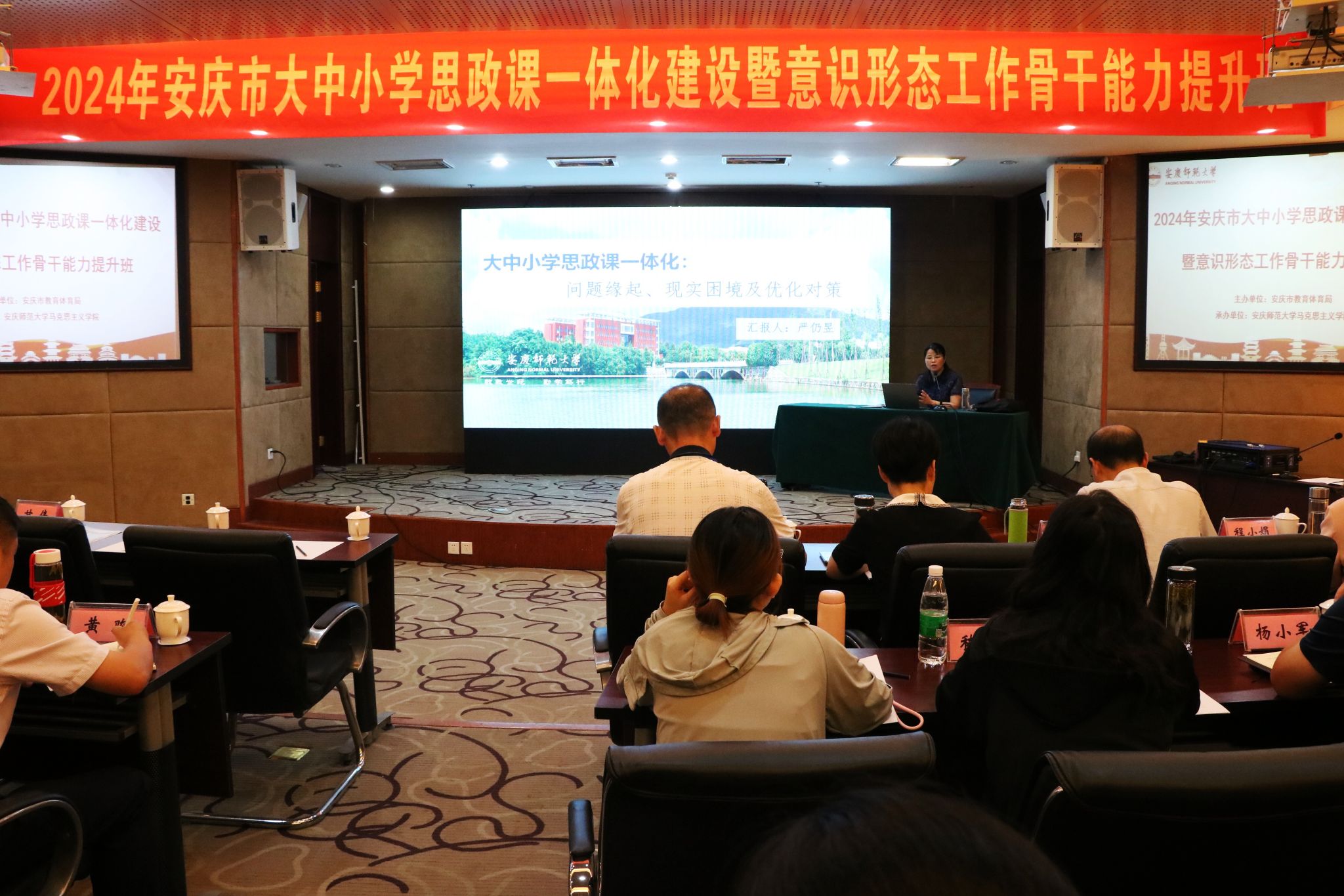 7月29日至8月2日,由安庆市教育体育局主办、bevictor伟德官网承办的“第四届安庆市大中小学思政课一体化建设暨意识形态工作骨干能力提升班”在潜山举办,来自安庆市的大中小学思政课教师近百人参加此次培训学习。