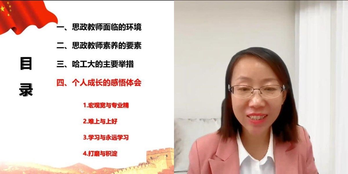 巩茹敏教授在报告中详细分析了思政课教师面临的环境、思政课教师素养的要素,并介绍了哈尔滨工业大学bevictor伟德官网在思政课教师培养及团队建设方面的特色举措,最后结合自己作为思政课教师成长发展的经历,寄语青年教师要上好每一堂课、坚持终生学习、多打磨积累。