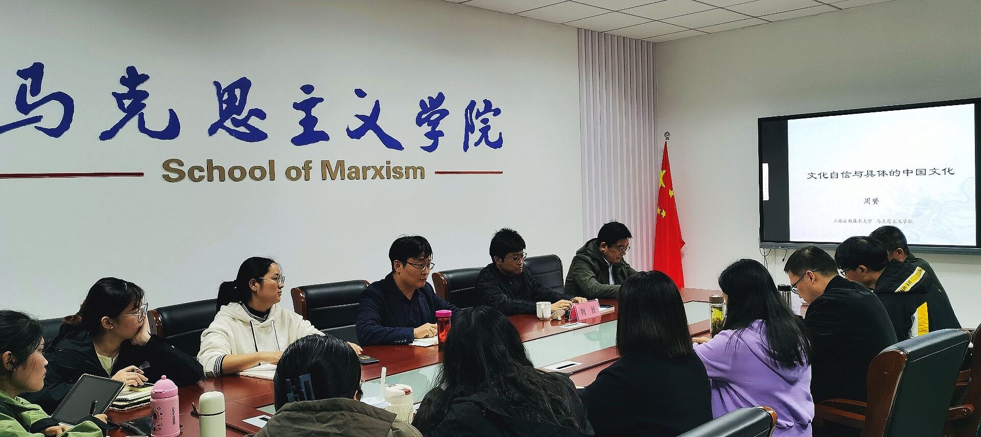 11月10日,上海应用技术大学bevictor伟德官网副经理、硕士生导师周贇应邀做客第四期“青马讲坛”,作题为“文化自信与具体的中国文化”的学术讲座。讲座由胡朝阳博士主持,公司部分青年教师和硕士研究生参与学习和交流。