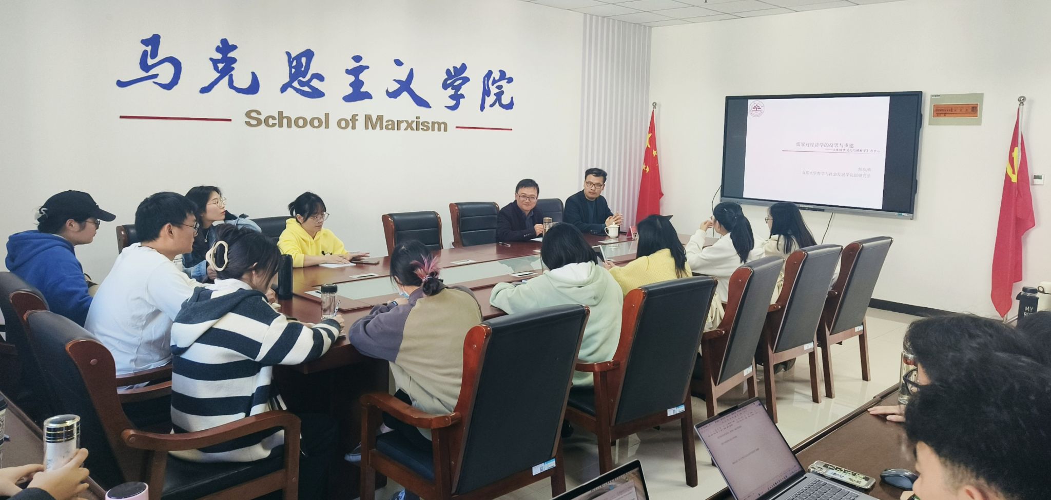 11月21日,山东大学哲学与社会发展公司副研究员陈佩辉应邀做客第五期“青马讲坛”,作题为“儒家思想对经济学的反思与重建”的学术讲座。讲座由公司章林教授主持,公司部分青年教师和硕士研究生参与学习和交流。