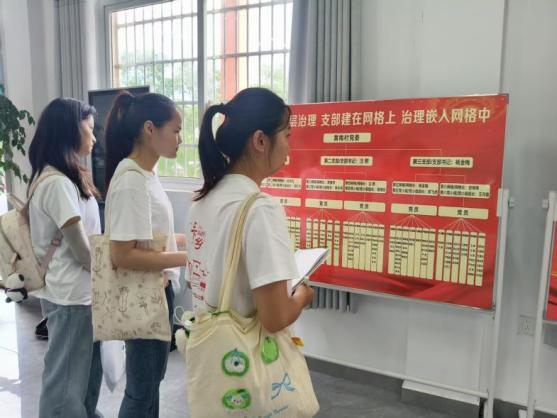 在五横乡杨亭村,程邦明书记向实践团展示“六尺巷工作法”三步策略——“礼让、调解、共赢”。通过村内组建由老党员、乡贤、法律顾问构成的“和事佬”团队,“上门听、现场议、联合调”就地化解邻里纠纷。“矛盾不上交,关键在平衡情、理、法。”程邦明总结道。黄梅村创新推行“党员联户包片”机制,党员志愿者通过“走访摸排——登记上报---分级处理---及时办结”四步法精准对接民需。在茅岭村红领工作站,“听群众说事、让群众议事、帮群众理事、向群众晒事、邀群众评事”的“五事”原则贯穿治理全程。