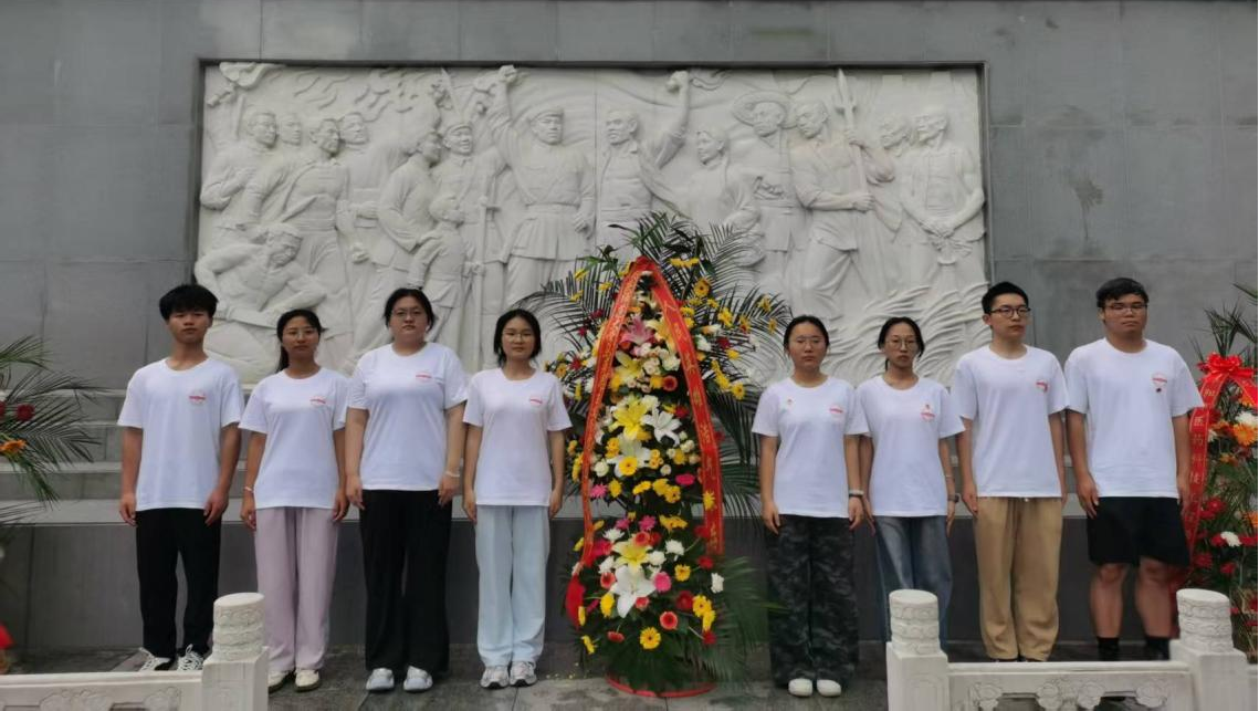 在金寨县红军广场,成员们沿象征“将星璀璨”的59级石阶拾级而上。每一级台阶,仿佛都镌刻着一段烽火岁月的记忆,承载着对革命先烈的崇高敬意。在庄严肃穆的烈士纪念碑前,全体成员整齐列队,向英烈敬献花篮,肃立默哀。在霍山县烈士陵园,团队成员在讲解员的引导下,瞻仰了革命烈士舒传贤的雕像。来到大别山安徽红色区域中心纪念馆,原霍山县党史研究室主任汤祖祥为团队成员开展了一堂生动鲜活的地方党史课。“英烈虽逝,精神不朽。他们用生命铺就了民族复兴之路,是我们永远铭记的精神灯塔。”团队队长思想政治教育24级延乔班刘诗语深情地说道。