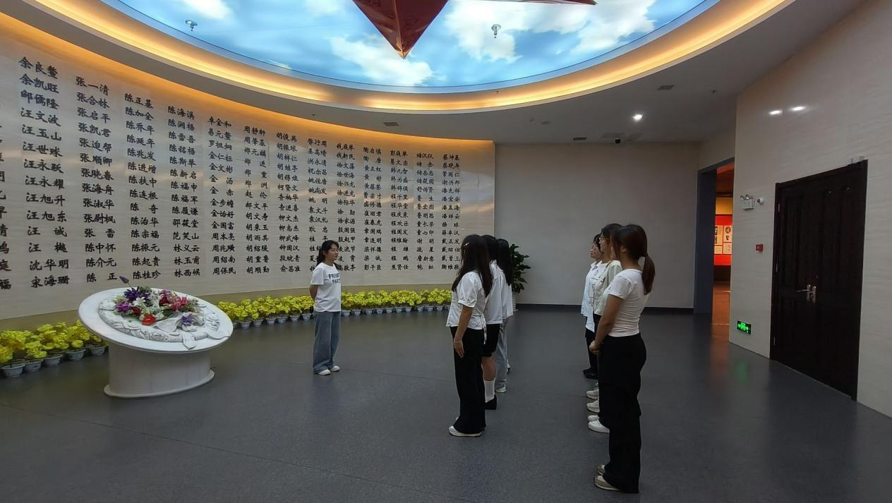 实践团首先来到了安庆市烈士陵园,团队成员怀着崇敬之情瞻仰革命烈士纪念碑,向为民族解放事业献出宝贵生命的先烈表示崇高的敬意。通过参观革命烈士纪念馆,队员们从珍贵的历史文物和影像资料中,深入了解安庆地区革命斗争的光辉历程。队长曹曦表示:“先烈们用生命铸就的精神丰碑,永远激励着我们青年一代砥砺前行。”