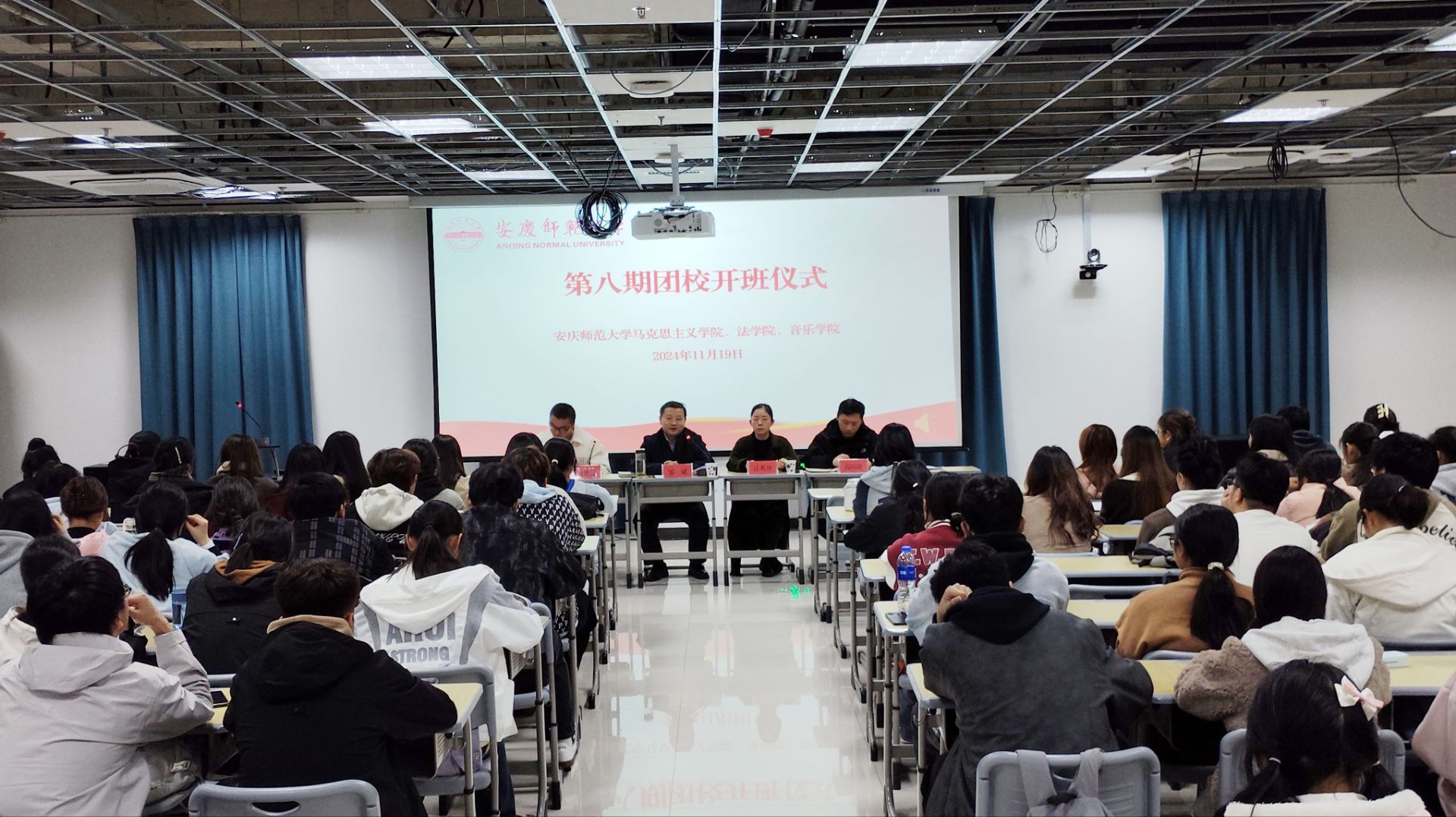 11月19日,bevictor伟德官网、法公司、音乐公司在Q楼119教室举行第八期团校开班仪式。bevictor伟德官网、法公司、音乐公司团委负责人、全体入团积极分子100余人参加,马克思主义公司党委书记邹斌出席开班仪式。