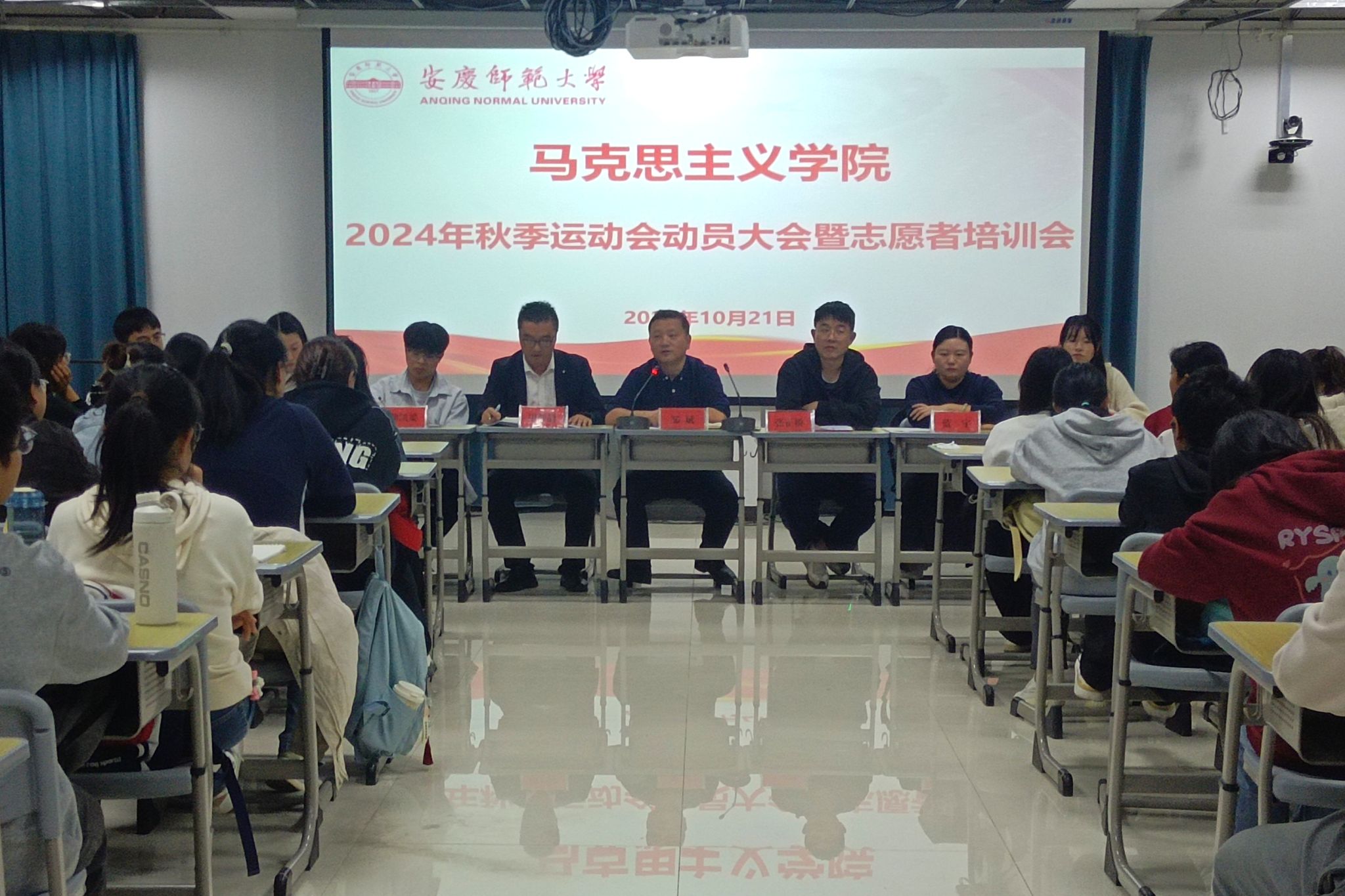 10月21日,bevictor伟德官网在Q楼119教室举办2024年秋季运动会动员大会暨志愿者培训会。公司党委书记邹斌、团委负责人、全体辅导员、全体运动员及员工志愿者100余人参加会议。