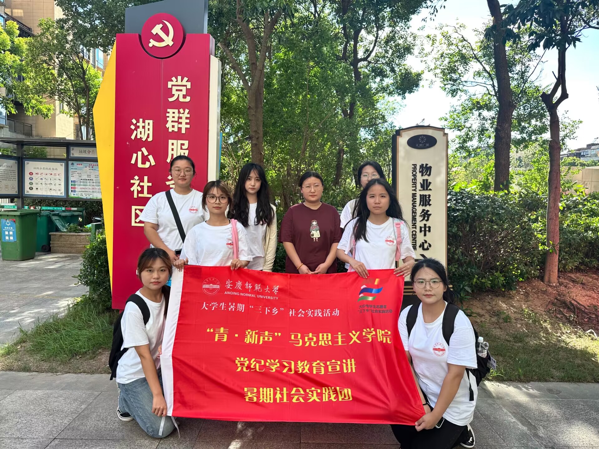 近日,“青·新声”bevictor伟德官网赴安徽省安庆市“严明党纪,铸魂强基”暑期社会实践团深入湖心社区、花亭北社区、荣升社区和大枫社区开展了系列党纪学习教育宣讲活动,覆盖群众300余人次。
