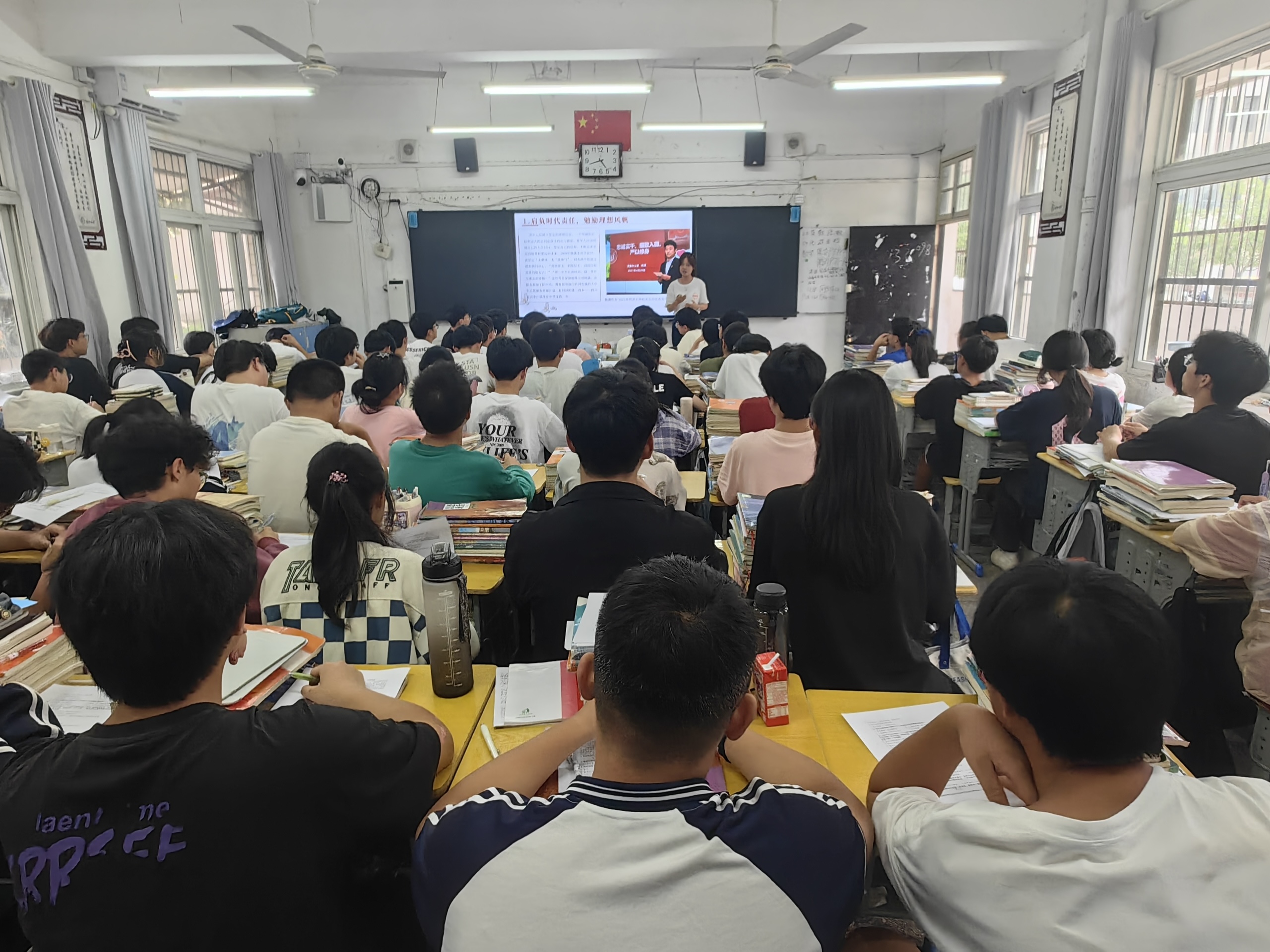 7月2日,实践团在指导老师的带领下,奔赴安庆市宿松县宿松二中开展“三下乡”暑期社会实践活动。三位宣讲人员以习近平总书记在北京大学考察和参加师生座谈时同学们的寄语为导入,用通俗易懂的语言讲述了“忆往昔,观当下”“我辈青年,为何奋斗?”“我辈青年,如何奋斗?”三个方面的重点内容,将新时代青年历史使命和社会责任贯穿于宣讲全过程,使广大青年员工深刻认识到奋斗不仅关乎个人的成长与发展,更关系到国家的未来和民族的振兴。