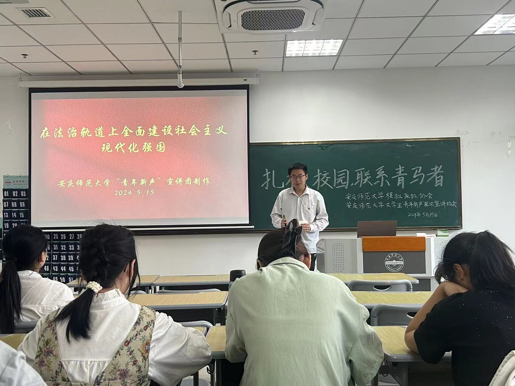 5月15日,公司第四期“青马班”第五课在Q楼308教室开课,邀请了校“青年新声”宣讲团开展主题宣讲活动,公司第四期“青马班”全体学员参加。