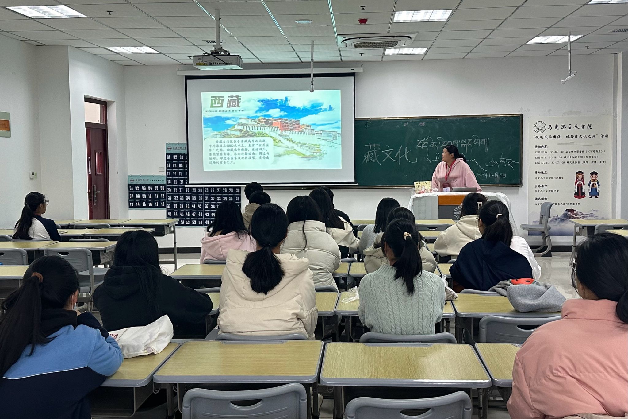 12月6日,公司“敬敷思源”志愿服务队在Q楼308教室开展“促进民族团结,体验藏族文化之旅”藏文化电影播放活动,公司同学积极参与,现场文化气氛浓厚。