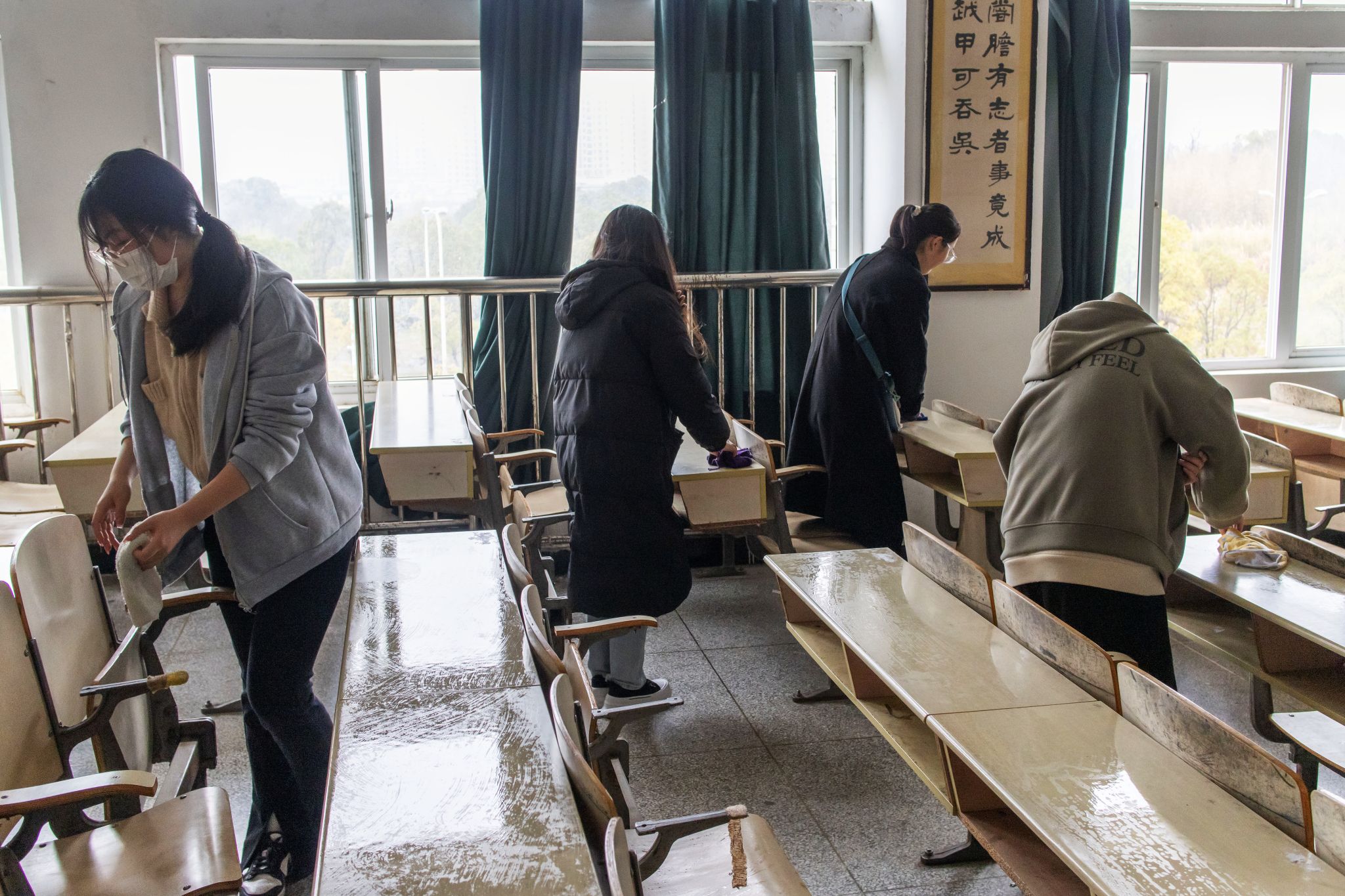 擦洗窗台黑板、清空桌洞垃圾、消除桌面笔迹、扫地拖地、开窗通风……志愿者们在每间教室都进行了一番大“整顿”。“最难清理的是桌子上的笔迹与黏胶,必须用毛巾沾水反复用力才能擦除。”思想政治教育专业2021级(1)班的朱欣雨表示,作为新时代的青年,在生活中应当多行好事,自觉传承与发扬雷锋同志无私奉献、全心全意为人民服务的可贵精神。