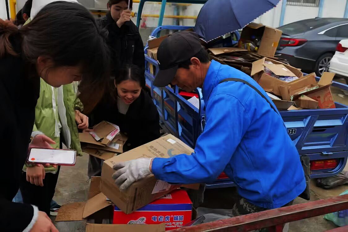 志愿者们先与报名员工取得联系,约好时间上门回收,再将废品收集整理卖给收购商。据活动负责人、思想政治教育专业2021级(2)班的丁静媛介绍,活动结束后,工作人员会将废品回收所得资金为公司对接社区的员工购置学习用品。“我们这次活动将公益与环保理念相结合,既能够实现资源的回收再利用,解决同学们的旧物处理问题,美化校园环境,同时也向社会传递了一份温暖。”