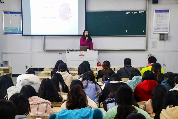 12月8日,公司2018级辅导员贺佳欢主持主题班会。会上,她为每一位考研学子发放信封,里面装有信纸、气球和星星。“我特意为每人准备了一张空的信纸,大家可以写下自己此时此刻最想说的话,我会为大家保存,一年后交还。”贺佳欢介绍,员工们考研压力大,可以通过吹气球来舒缓压力。