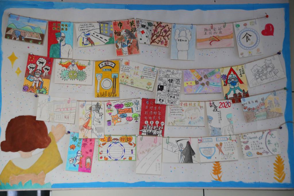 在展览现场,一张张色彩艳丽的明信片吸引了许多员工和老师驻足观看。有医护人员与新冠病魔作斗争的绘画,有疫情防控小知识的宣传,也有把传统门匾绘成光盘行动宣传物的创意新作……每一张创意明信片都充分展示了员工创新创意思维的活跃。