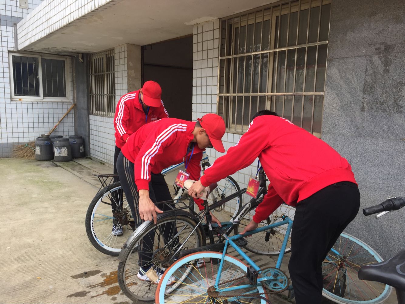 当天下午,员工会全体成员在敬敷广场集合,之后由各部部长带领各自的部员,分别负责不同的区域。东门、西门、南门、宿舍楼和各教学楼门口,他们的身影随处可见。成员们身着统一的服装,将倒下的自行车一辆一辆的扶起,将乱停乱放的自行车一步一步的归位,积极行动、互帮互助。在成员的共同努力之下,校园内的自行车变得整齐有序。